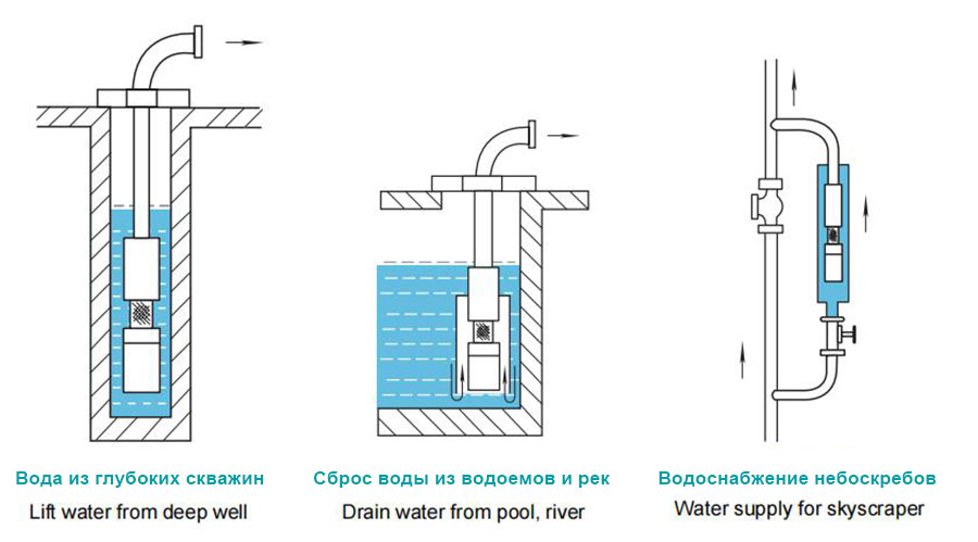 التكامل المباشر في المجموعة، والعمل في المياه العميقة. تستخدم أساسا لري الأراضي الزراعية وإمدادات المياه والصرف الصحي للمدن والمؤسسات الصناعية والتعدين.