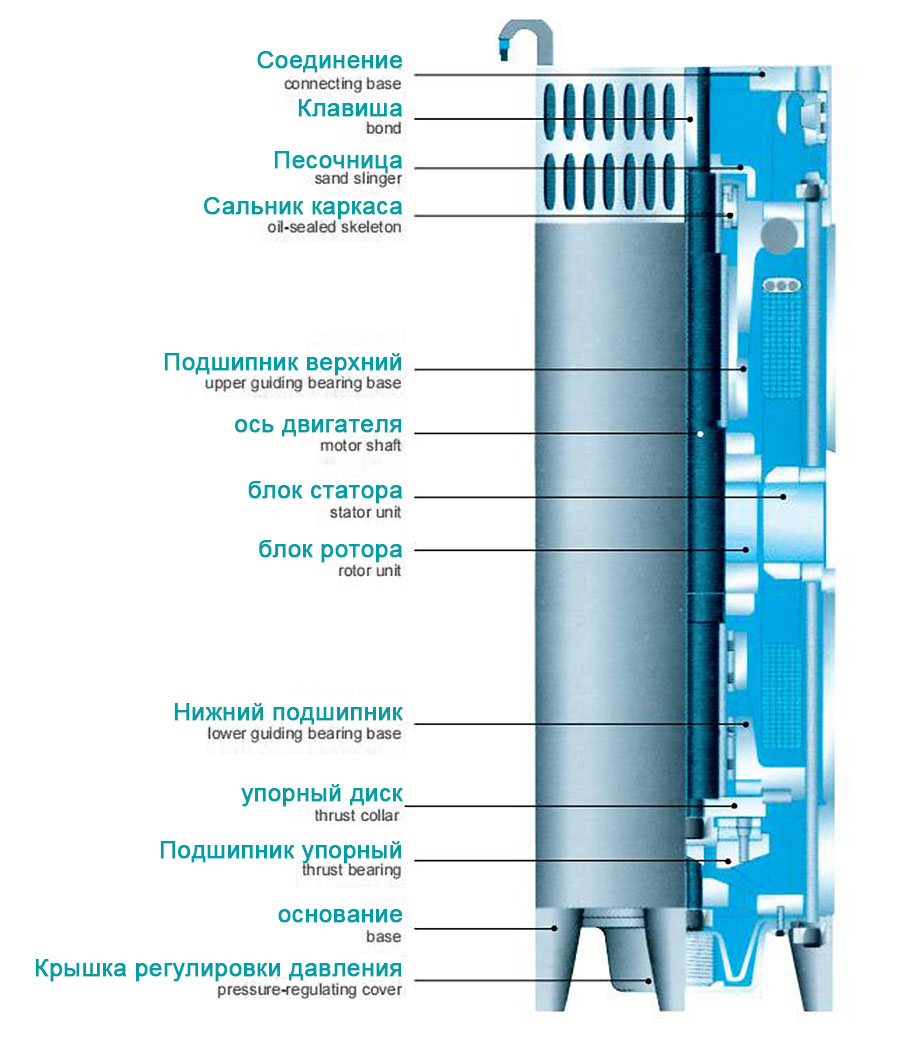 2. يستخدم المحرك الغاطس تصميمًا رطبًا مملوءًا بالماء من نوع YQS، مملوءًا بالماء النظيف في التجويف، وذلك بشكل أساسي لتبريد المحرك وتشحيم المحامل. أثناء التشغيل، نظرًا لأن التغيرات في درجة الحرارة قد تسبب تغيرات في تعبئة الماء، يتم تركيب منظمات الضغط في المحرك للمعايرة.