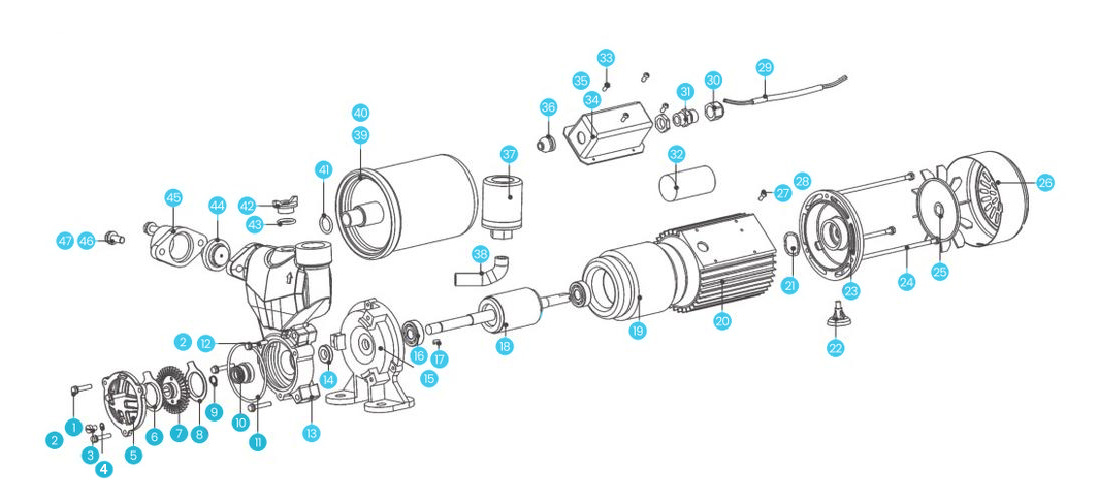 | 10 | الختم الميكانيكي | 22 | دعم الساق | 34 | صندوق اتصال | 46 | مزلاج | ||||||||