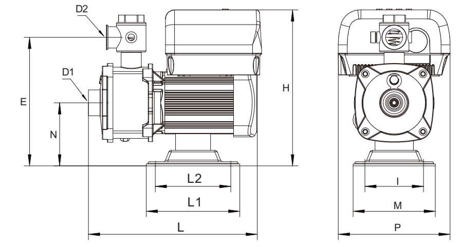 | نموذج | د1 | د2 | L | H | N | E | L1 | L2 | I | P | M | غيغاواط (كجم) |
