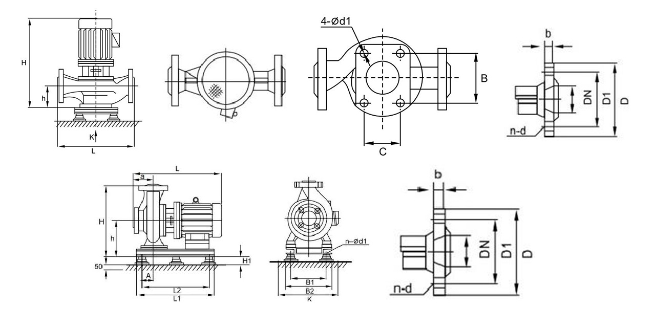 تركيب المضخات العمودية | حجم المضخة الأفقية | حجم الشفة | عزل الاهتزاز | H1 | |||||||||||||||