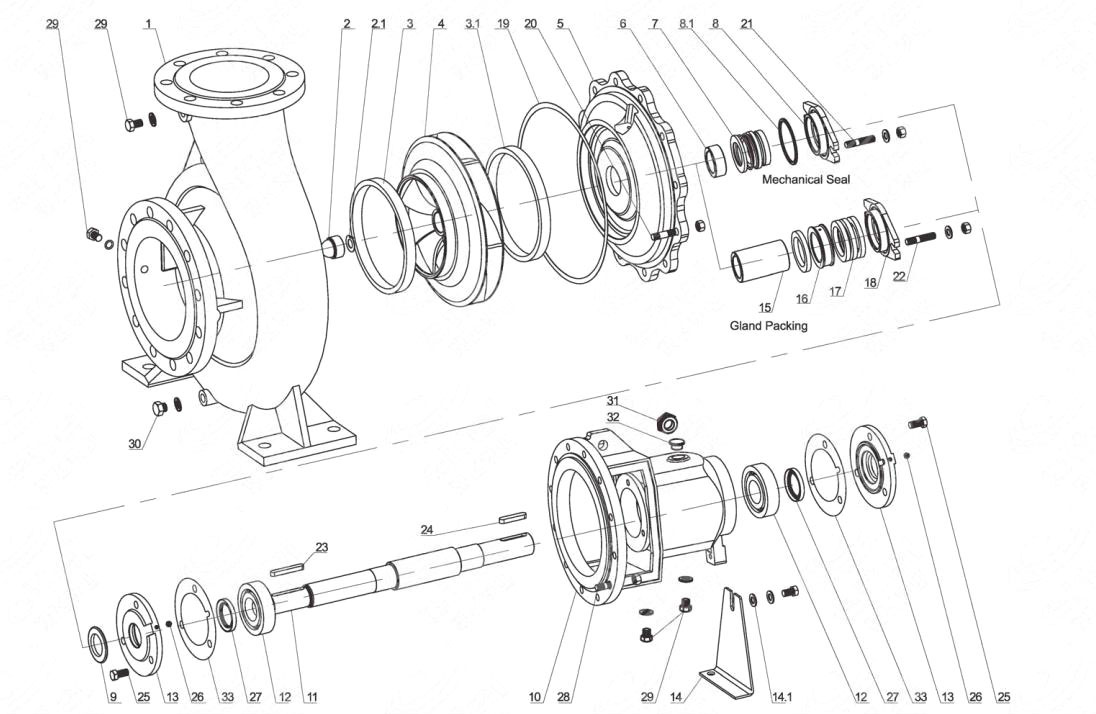 السلسلة A DIN24255 / EN 733 مضخة طرد مركزي قياسية