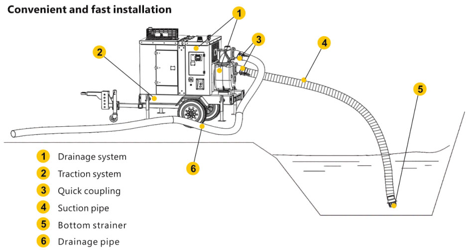 ● وحدة مضخة بمحرك ديزل مناسبة للعمل على الفور بدون كهرباء.