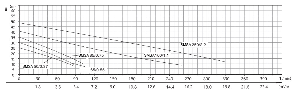 | SMSA50/0.37 | 450 | 25 | 16 | 85/5 | 50/3 | 3200 | 220 ± 20% | 50/60 | 1¼"/1" |