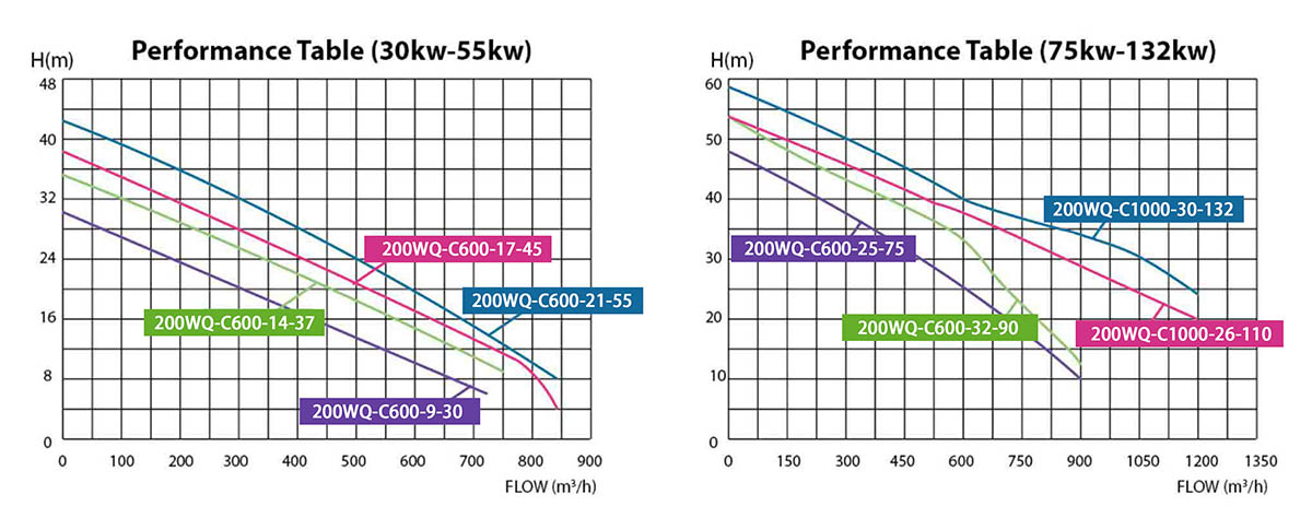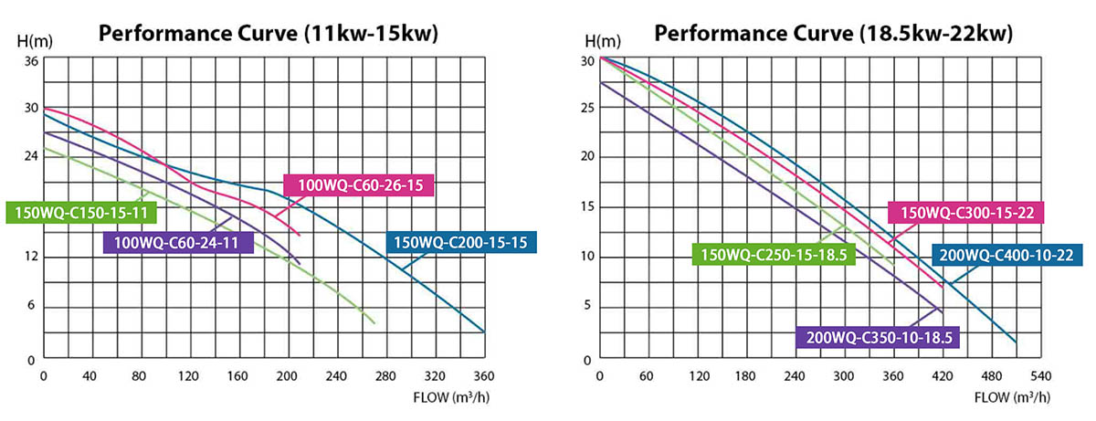 ② ZEN WQ-C يمكن للمضخة استخدام التدفق عند كل نقطة. القوة هي نفسها تقريبا. درجة حرارة المحرك هي نفسها تقريبًا.