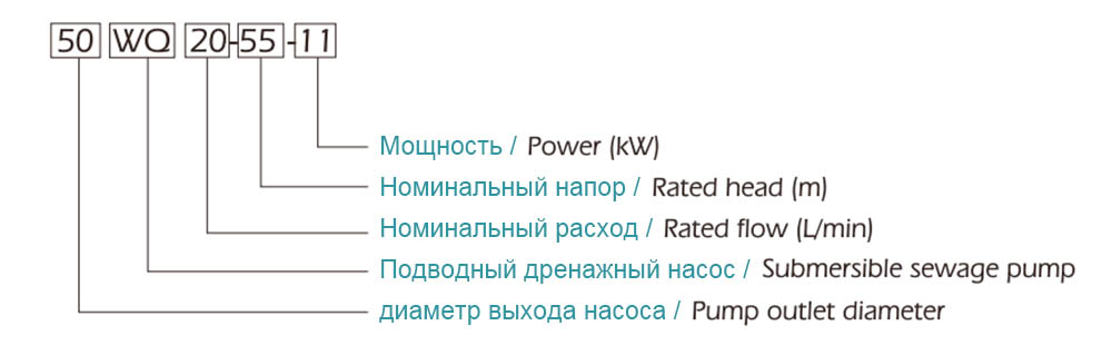 | 50WQ(د)15-20-2.2 | 15 | 20 | 2.2 | 3 | 380/220 | 50 | 2900 | 62×25×28 |