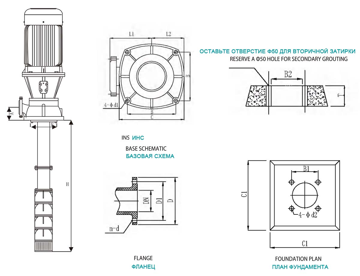 | 90-110 لتر/ثانية | الماء عميق | 250 | F305 | 380 | 255 | 360 | 510 | 4-Φ22 | 340 | 295 | 200 | 12-Φ22 | 800 | 360 | Φ330 | 300 | 4-Φ50 |