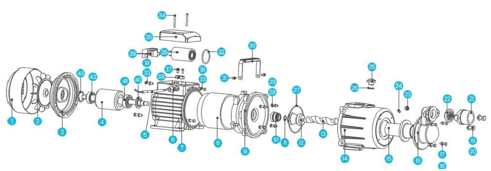 | 10 | الختم الميكانيكي | 21 | غطاء المدخل | 32 | "يا" الدائري | 43 | حلقة مفتوحة | |||||||