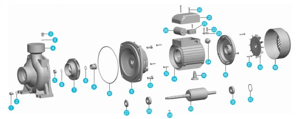 | 4 | غلاف المضخة | 15 | محطة | 26 | مكثف |